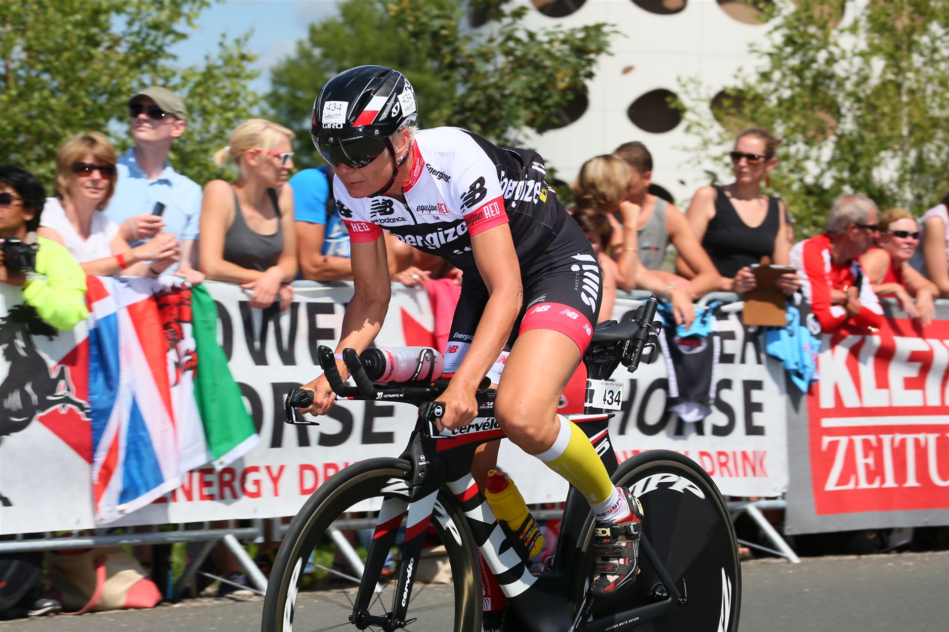 Auch hier gibt es viele Fans an der Strecke. Der DJ feuert mich mit der Bemerkung "Ironlady" an, ich kurble den Berg hoch.