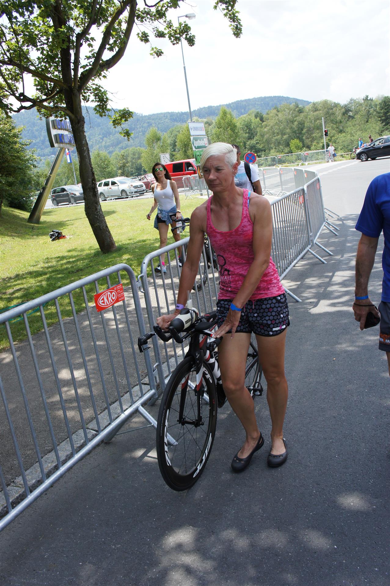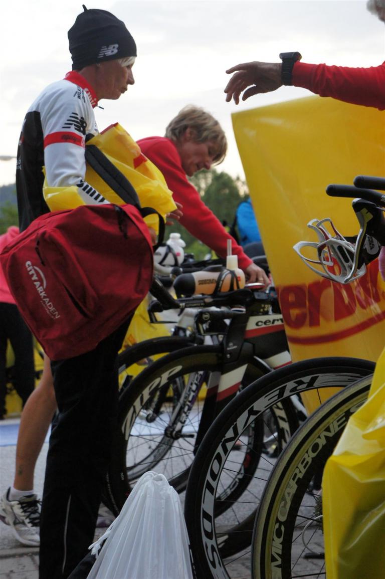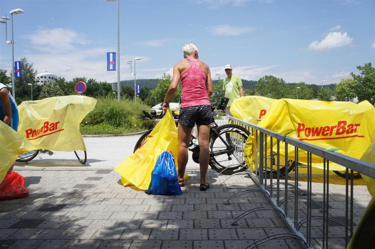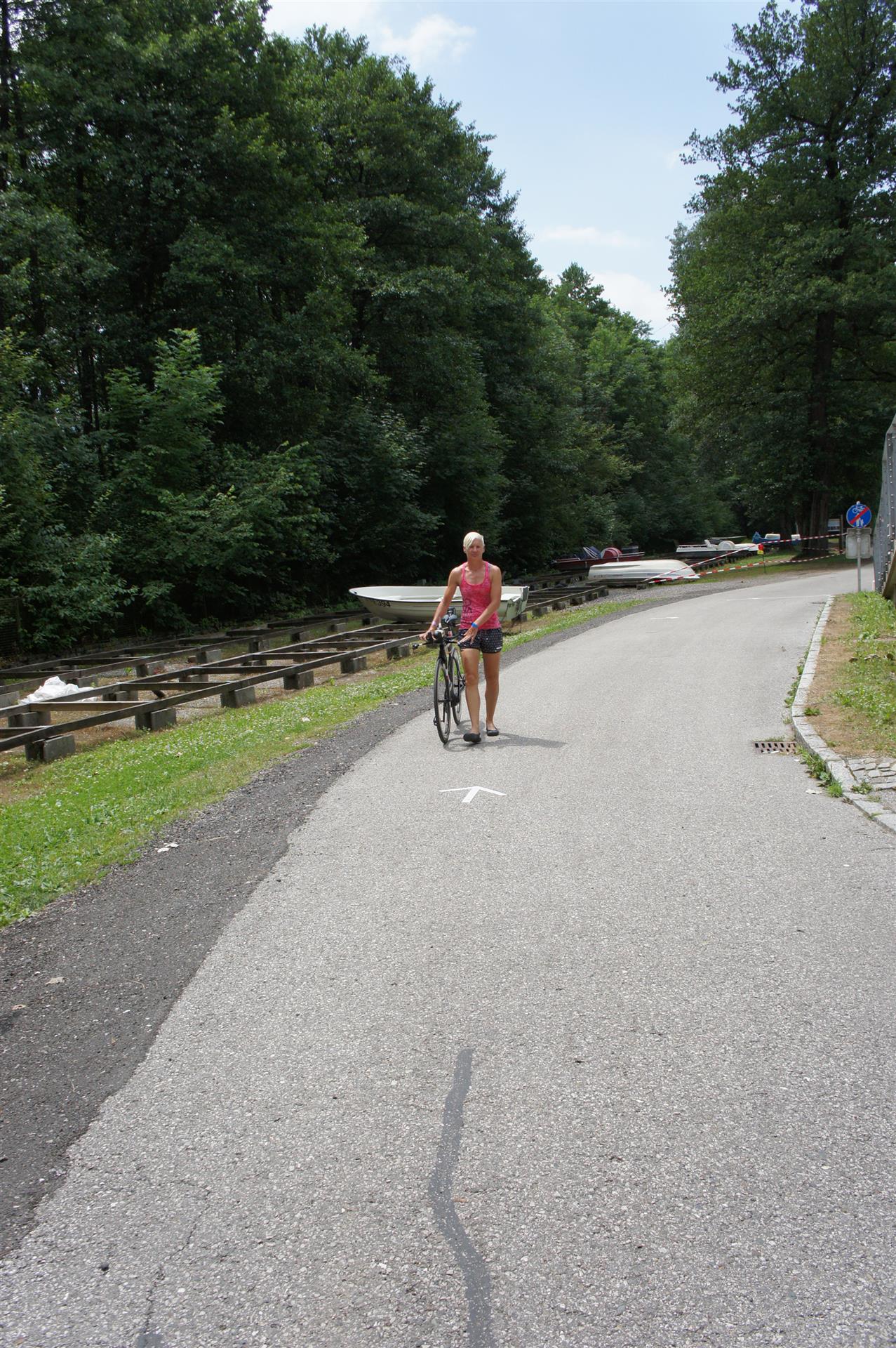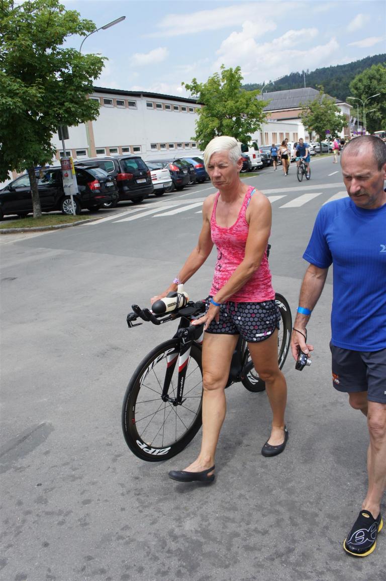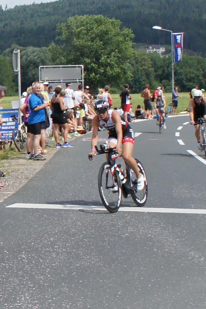 In der Wechselzone schnell die Radutensilien anziehen und ab aufs Rad. Es geht erst einmal Richtung Station bevor man dann am Wörthersee entlang fährt. Die ersten Kilometer ist die Radstrecke noch relativ voll. Das Feld muss sich langsam auseinander ziehen.