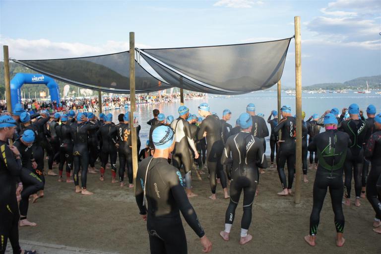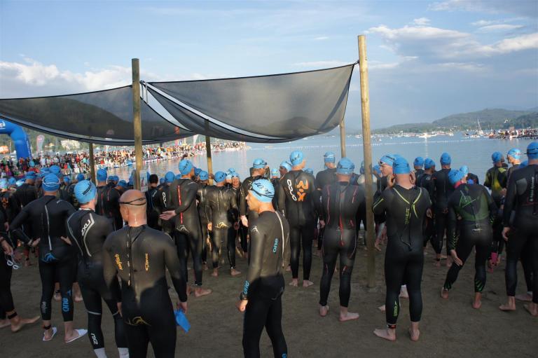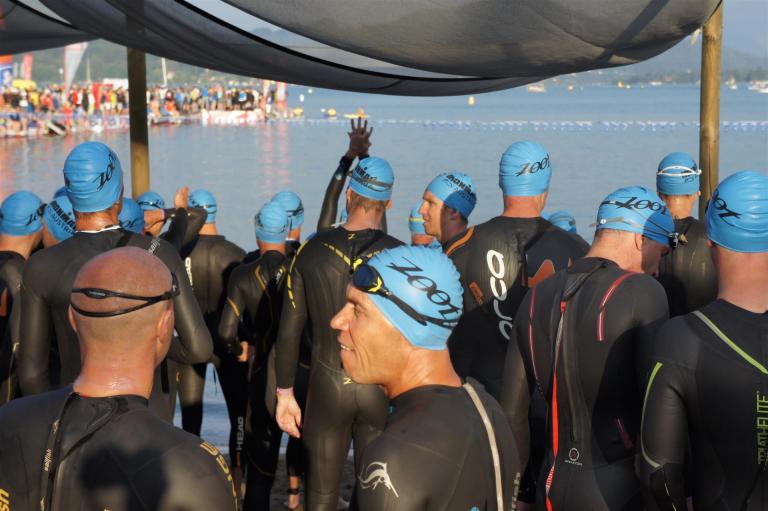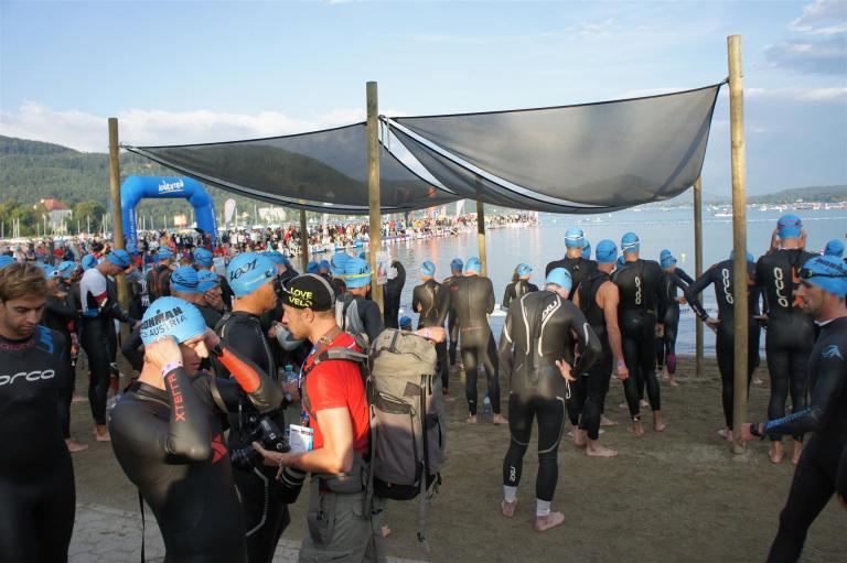 Wie bereits im Vorjahr gab es wieder eine frühere Startgruppe, die bereits um 6:45 Uhr zeitgleich mit den Profis startete. Glücklicherweise war ich in dieser Gruppe, was den Schwimmstart und das Schwimmen doch etwas angenehmer machte. Es ist schon ein Unterschied ob man mit ca. 2.600 Athleten an den Start geht oder nur mit einigen 100.