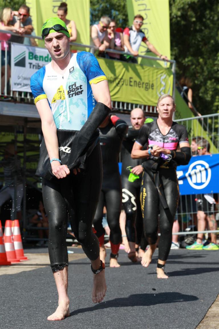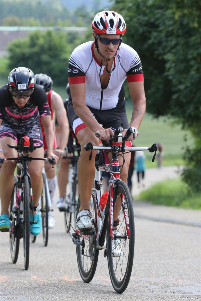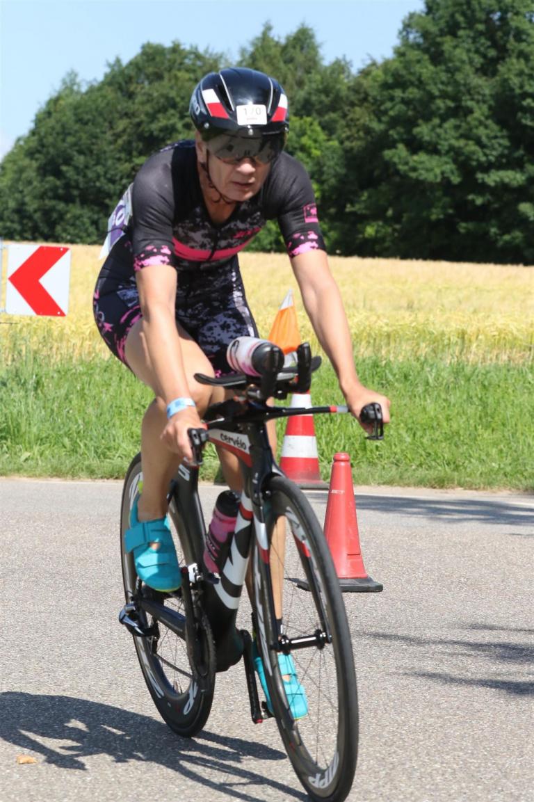 Geschwommen wurde im Hardtsee in Ubstadt-Weiher. Bei einer Wassertemperatur von 23,7 Grad durften wir mit Neo schwimmen, für die Profis galt Neoverbot. Mit einer Schwimmzeit von 36:25 ging ich als 3. Frau in meiner AK aus dem Wasser.