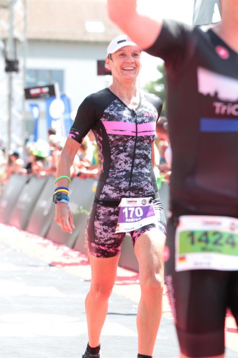 Mit diesem Platz war für mich klar, ich muss Gas geben. Trotz Hitze versuchte ich ein konstantes und zügiges Tempo zu laufen. 3 Runden a 7 Kilometer mit einigen kleinen Anstiegen und viel Sonne. Bei Temperaturen um die 30 Grad war man um jede Abkühlung dankbar. Einige Anwohner standen mit dem Gartenschlauch an der Strecke und gaben den Athleten die Möglichkeit sich etwas abzukühlen. Den Halbmarathon konnte ich in einer Zeit von 1:45:33 laufen. Nach insgesamt 5:33:56 ging ich nach einem tollen Wettkampf und einem 1. Platz in der AK 55 durchs Ziel. Ich hatte nicht damit gerechnet, solch eine Platzierung zu erreichen. Jetzt gibt es einige Tage lockeres Training und dann geht es zum Endspurt für die Langdistanz. Das teilweise sehr harte Training der letzten Wochen und Monaten hat sich definitiv bereits jetzt gelohnt.