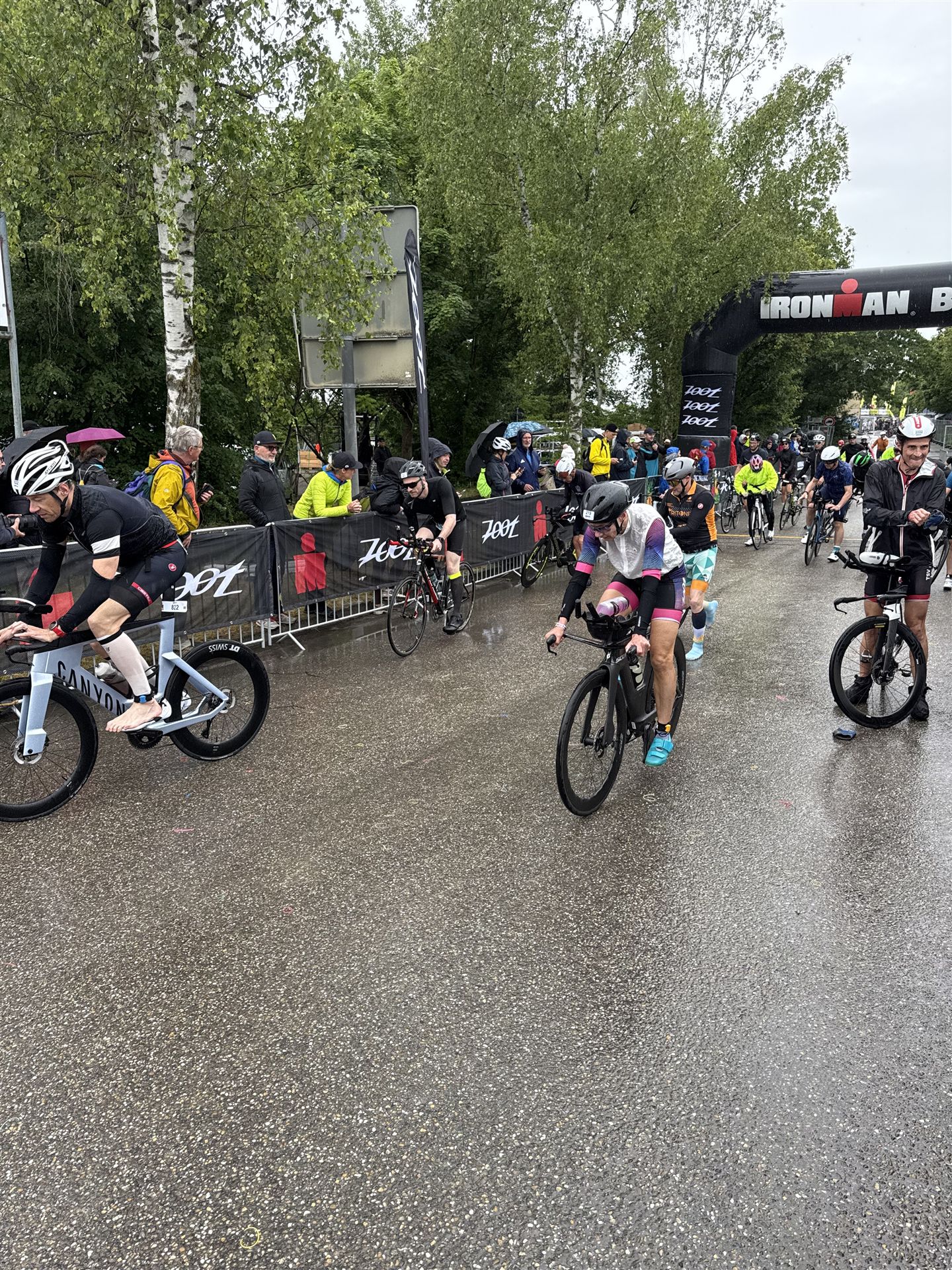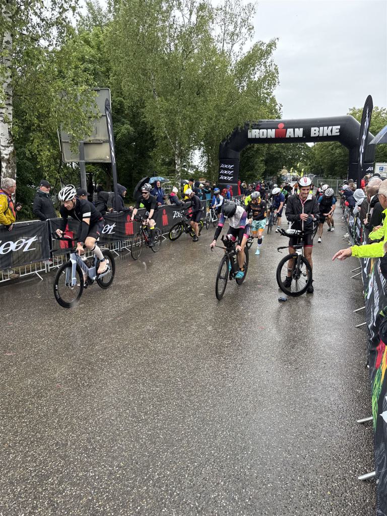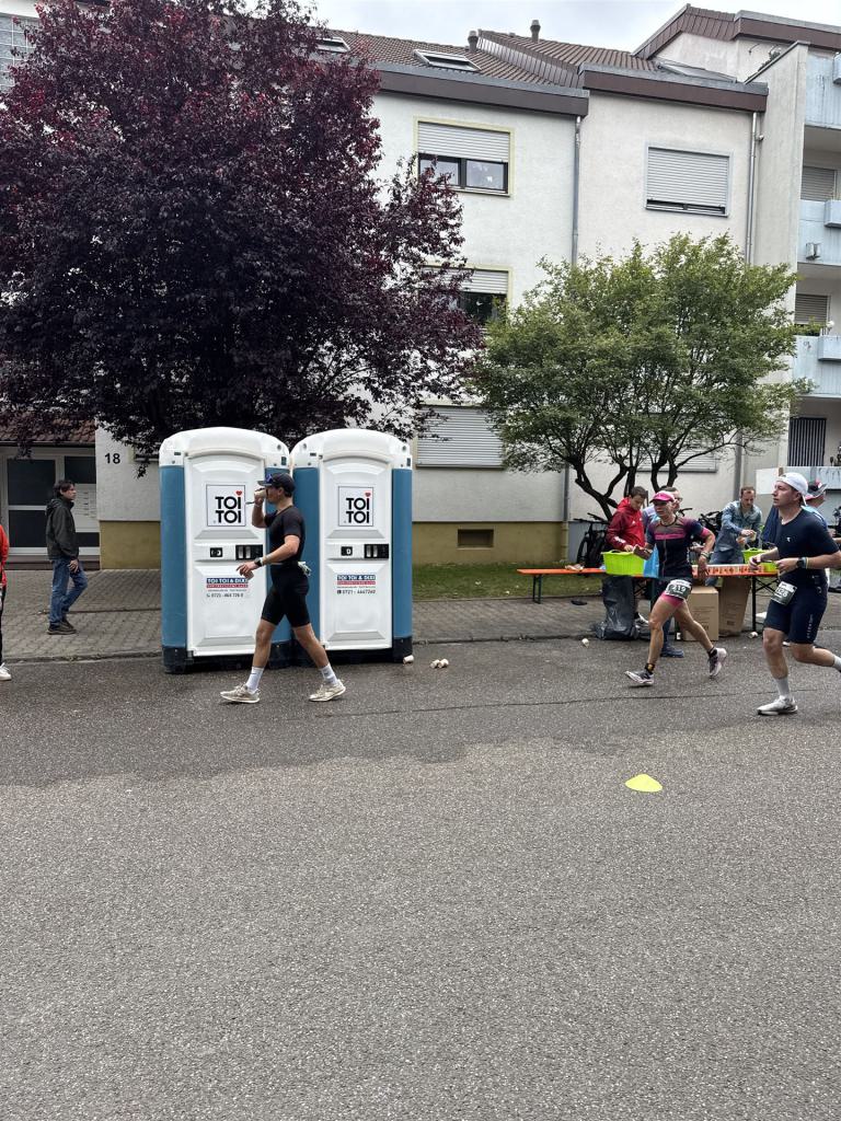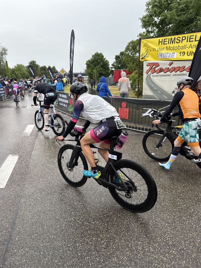 Rein in die Wechselzone und Rad aufpumpen sowie Getränke und Verpflegung am Rad anbringen.