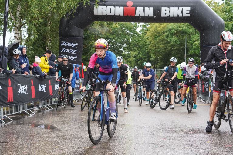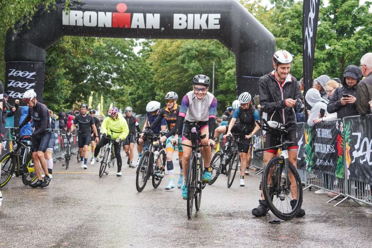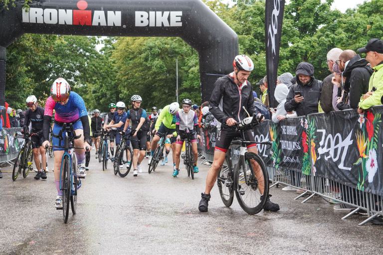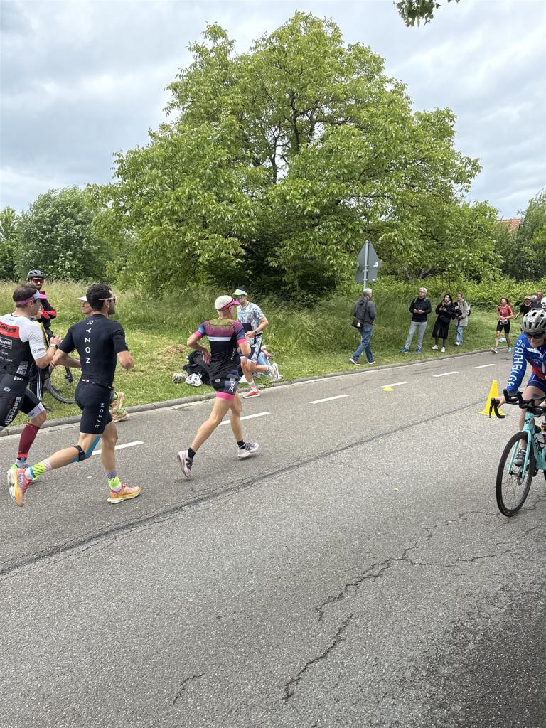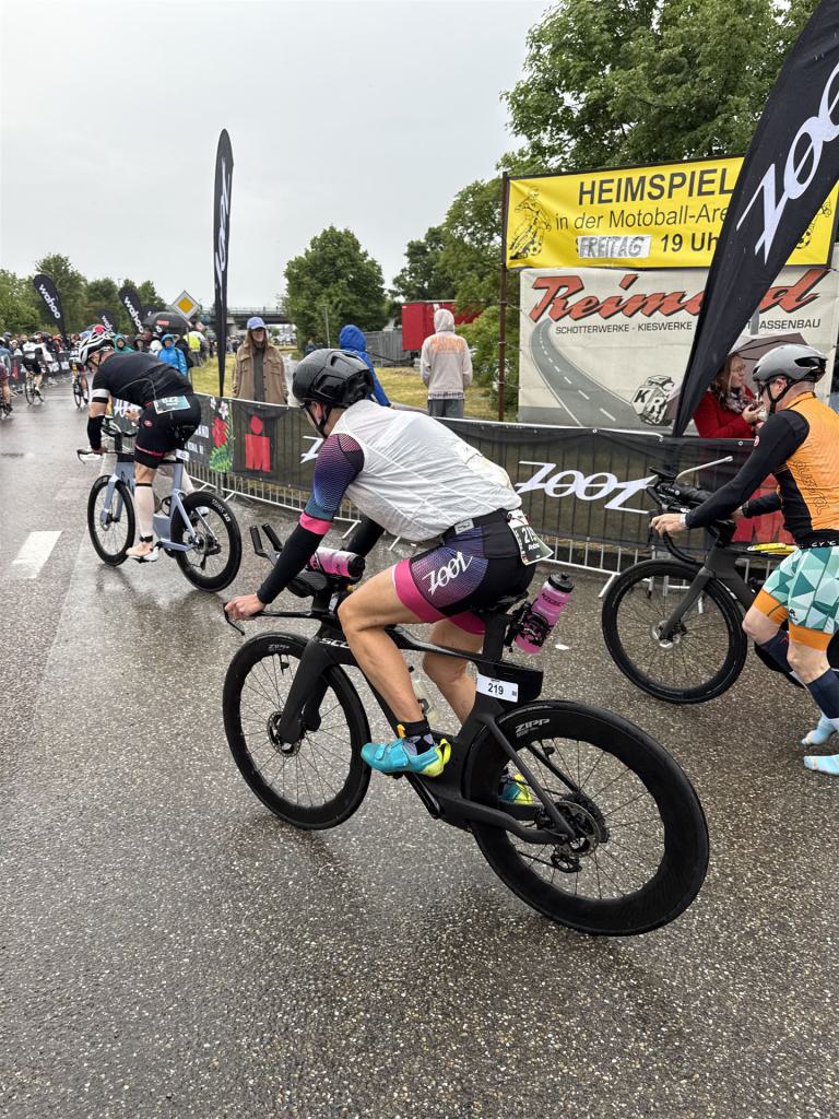 Rein in die Wechselzone und Rad aufpumpen sowie Getränke und Verpflegung am Rad anbringen.