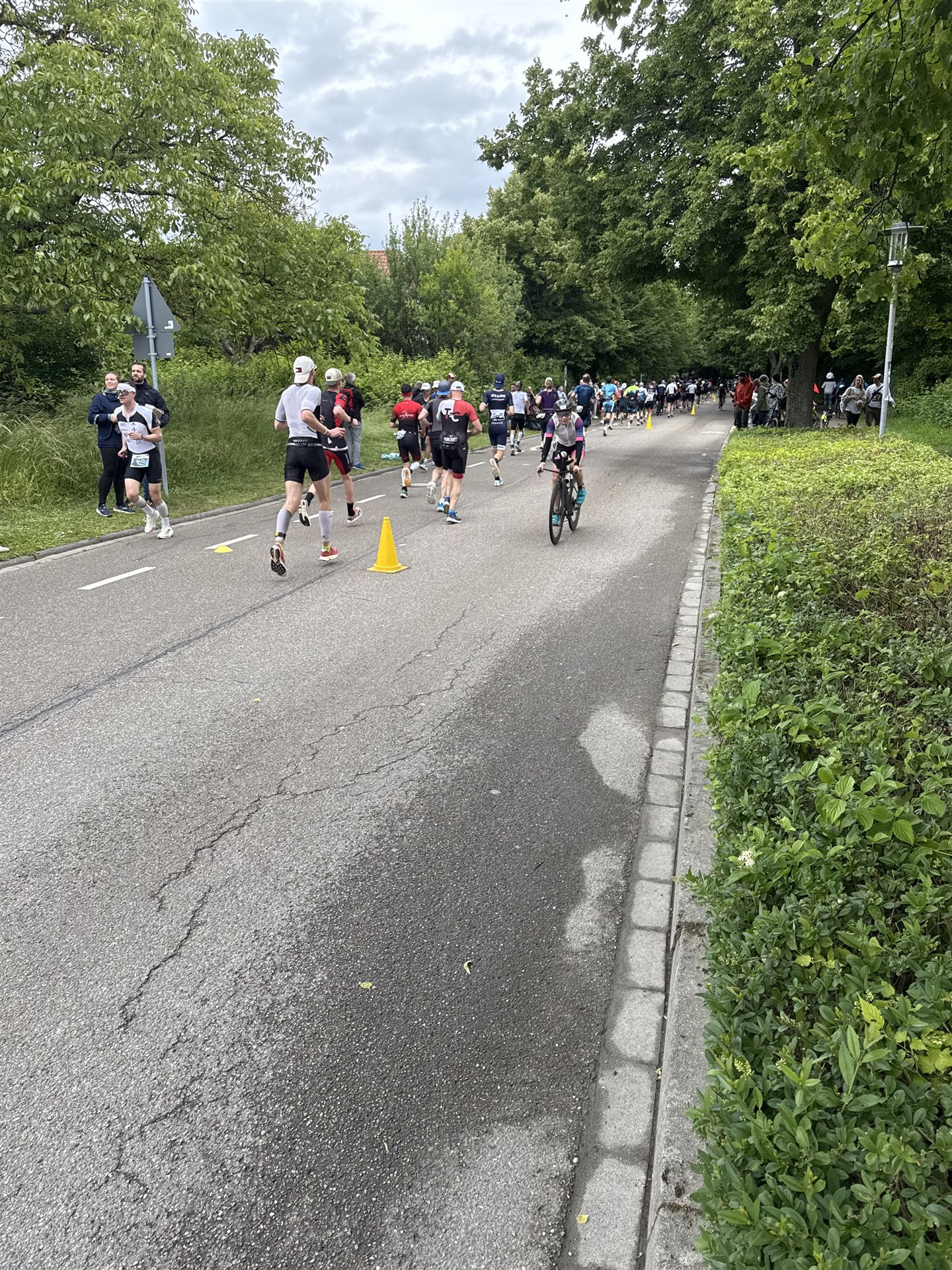 Ich esse ein Gel und gehe ein Stück. Langsam geht es mir wieder besser und ich laufe wieder langsam an.