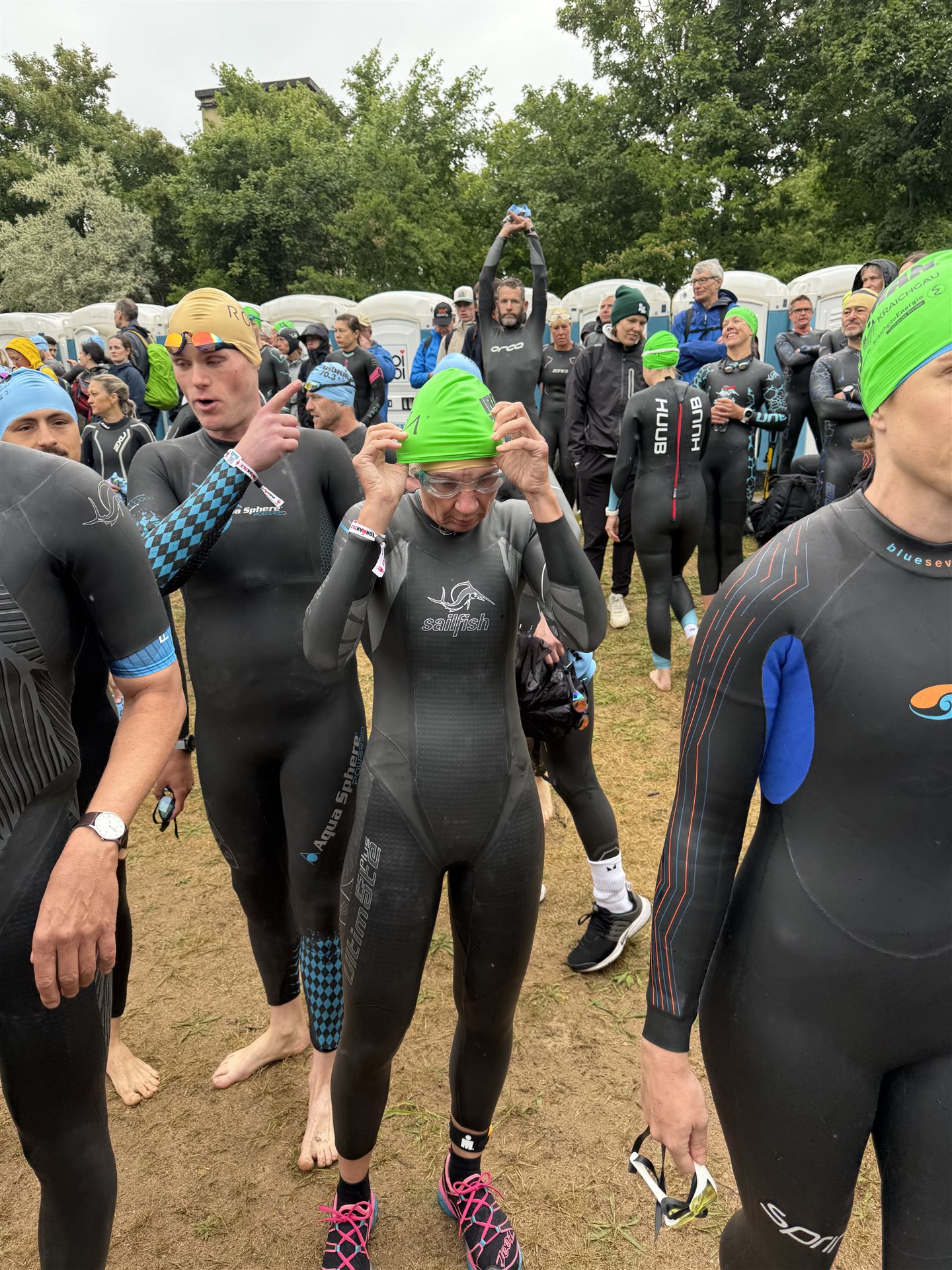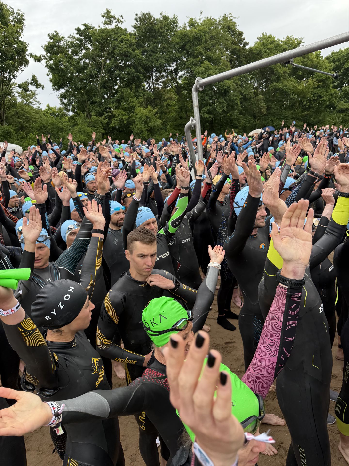Ich gehe so circa 8:37 Uhr ins Wasser. Es wird eine Runde mit 1,9 Kilometer geschwommen.