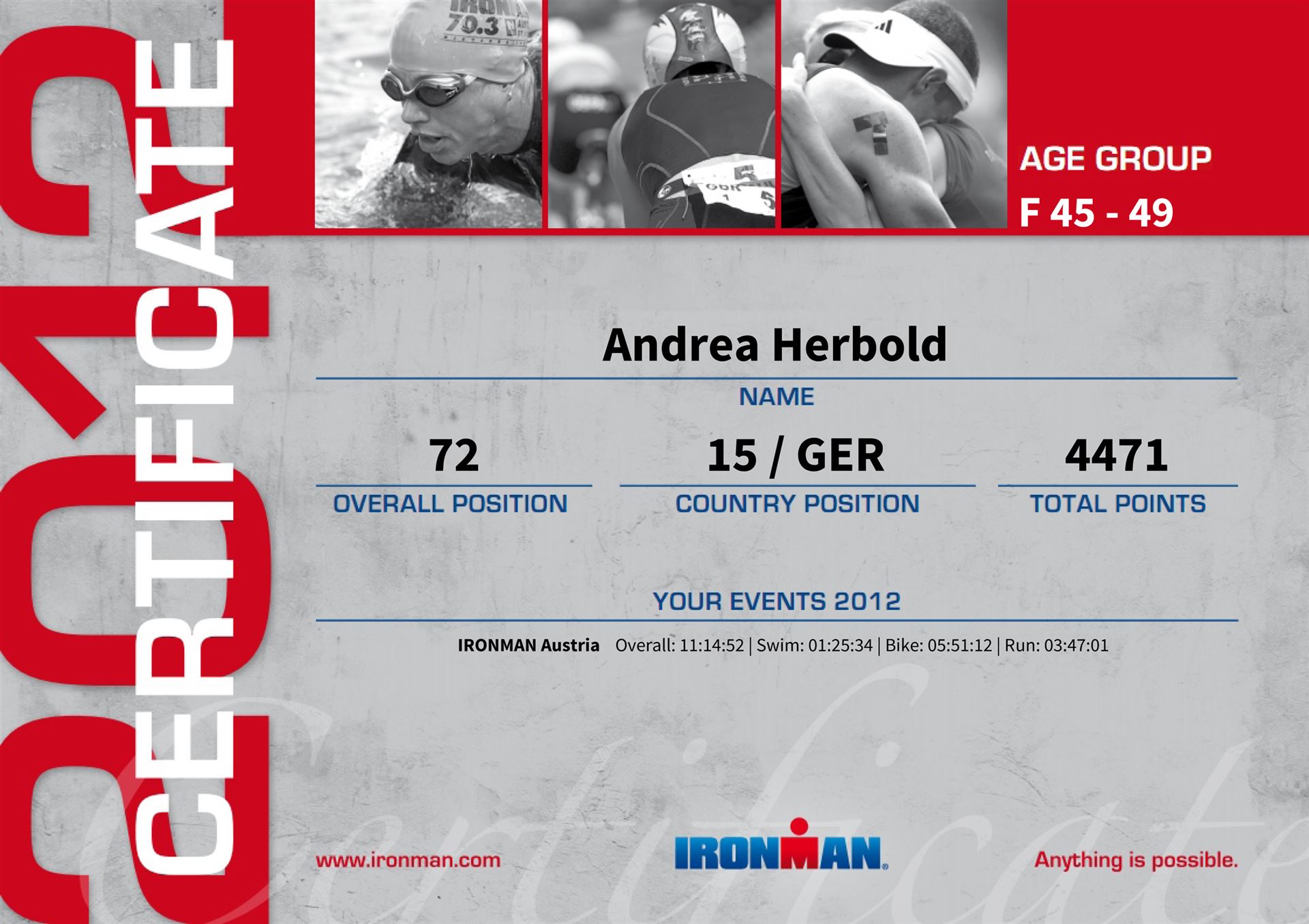 IRONMAN Age Group Ranking 2012