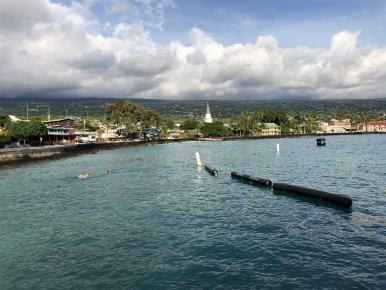 Am Pier tummeln sich bereits viele Athleten und Begleitung. Das Meer hatte eine angenehme Temperatur und war leider auch wellig. Was für mich Schwindel und Übelkeit bedeutet. Ich kann mich einfach nicht an die Wellen gewöhnen. Mit dem Salzwasser kann ich mich arrangieren, aber die Wellen. Habe auch erhebliche Probleme mit der Orientierung, ist jedoch nichts Neues auf Hawaii für mich.
